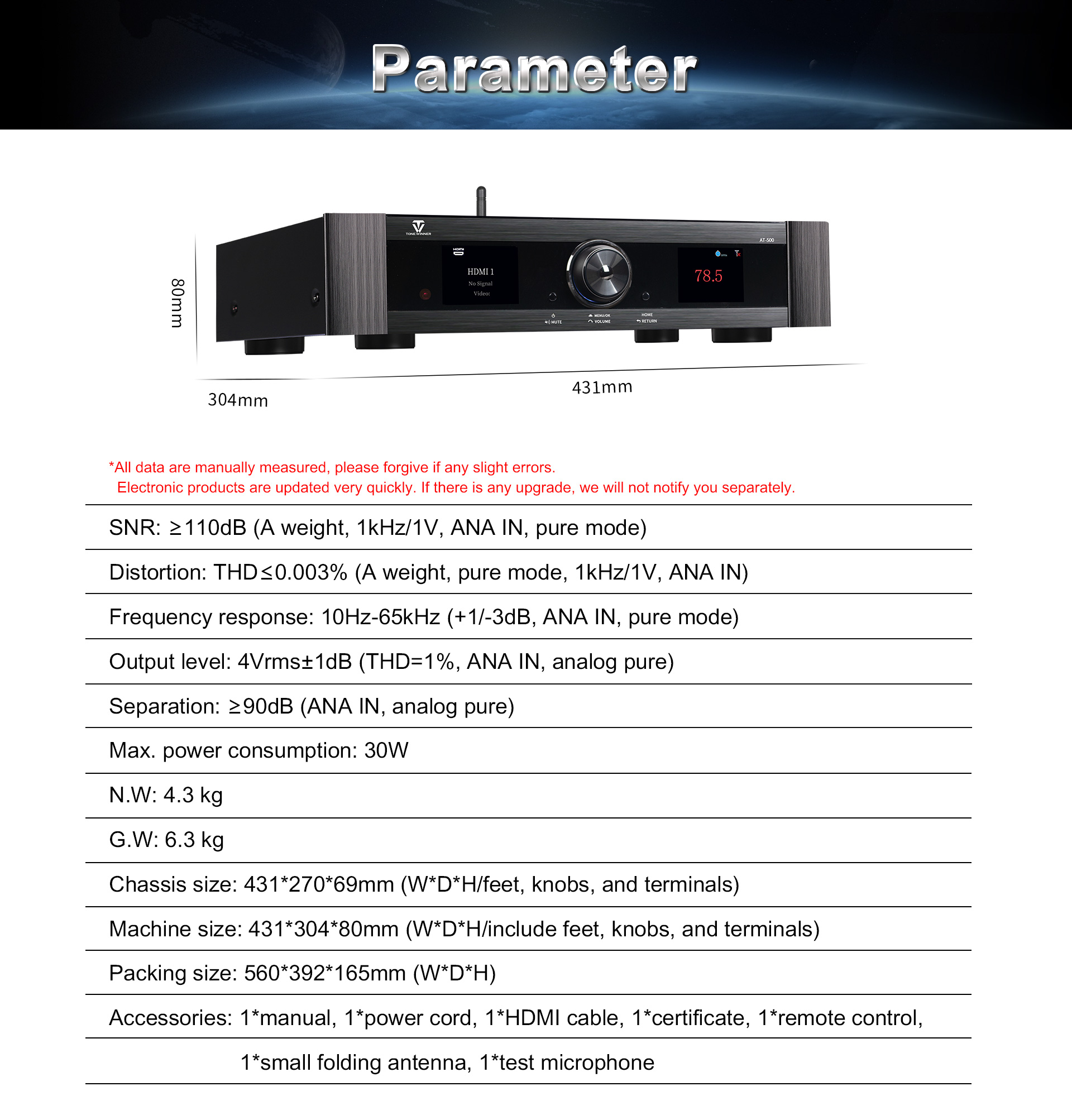 مزودًا بمحول رقمي تناظري Cirrus Logic CS42528 DAC عالي الجودة، يضمن جهاز AT-500 إنتاج صوت عالي الدقة بوضوح استثنائي، ونطاق ديناميكي واسع، وتشويه منخفض للغاية. من النغمات الموسيقية الدقيقة إلى المؤثرات السينمائية المذهلة، تُعرض كل التفاصيل بدقة متناهية.