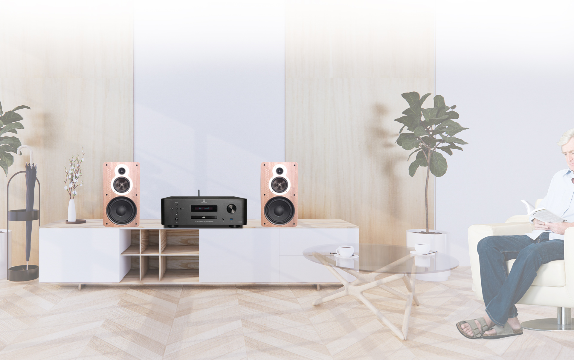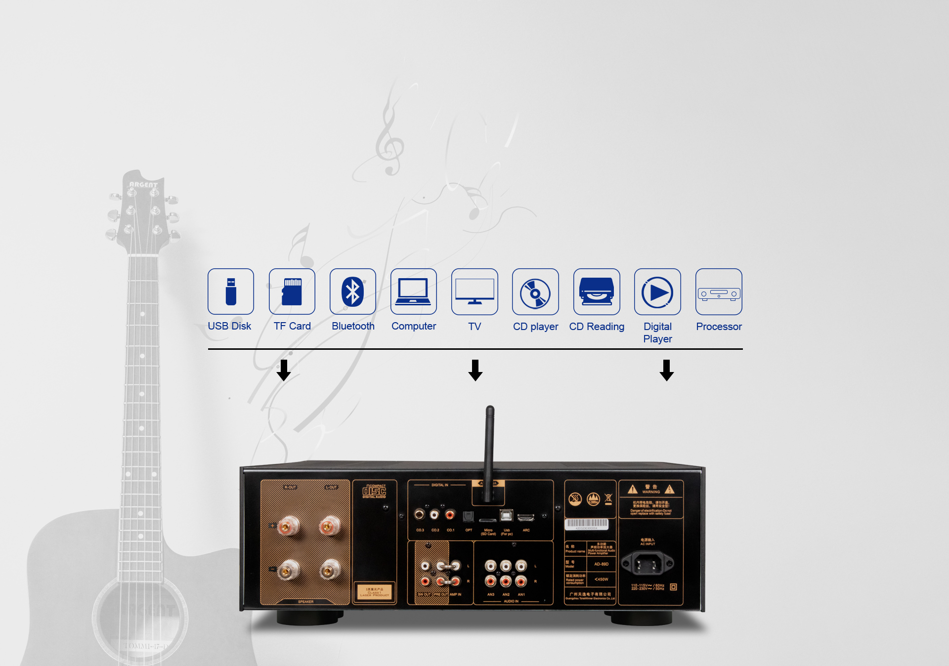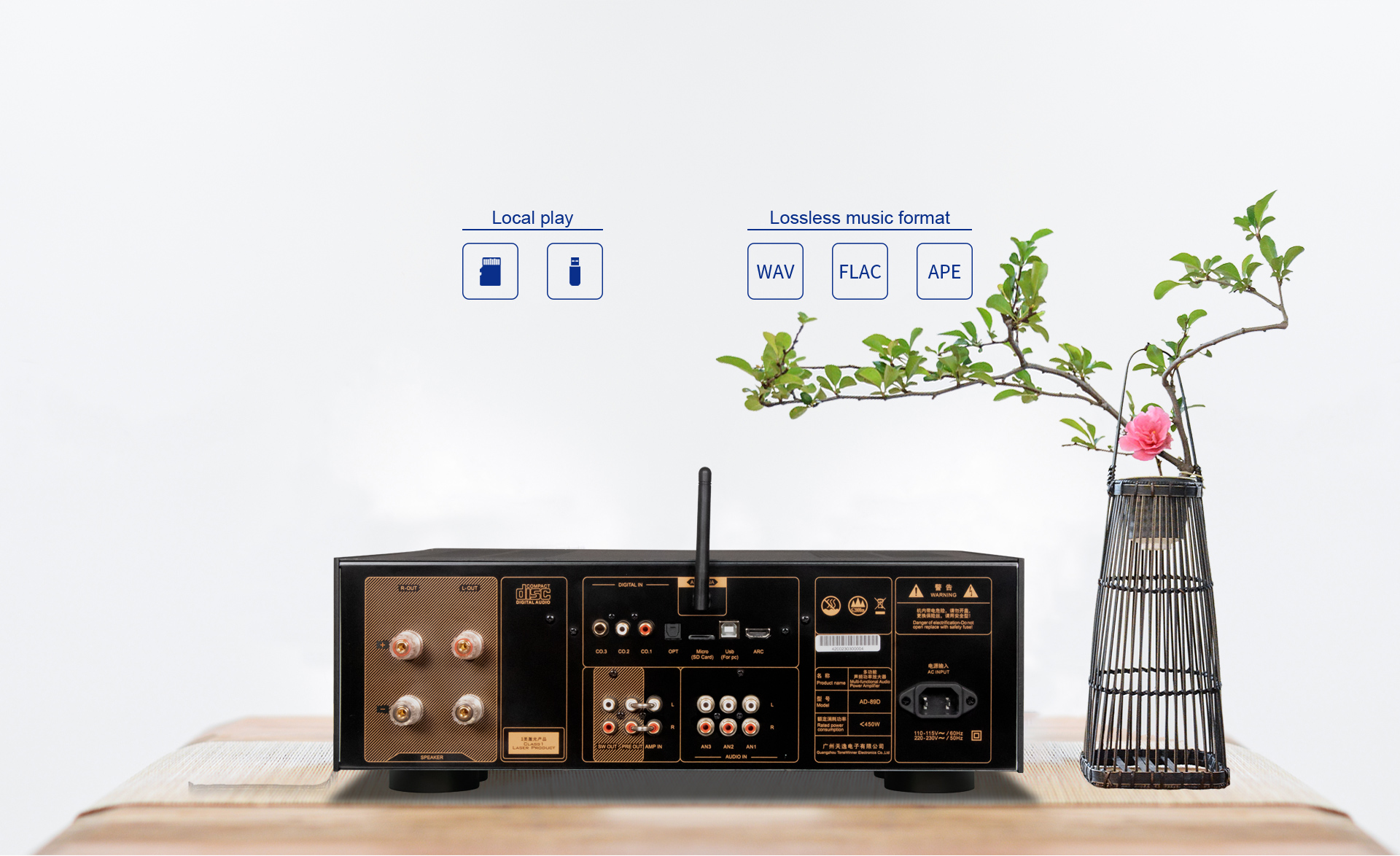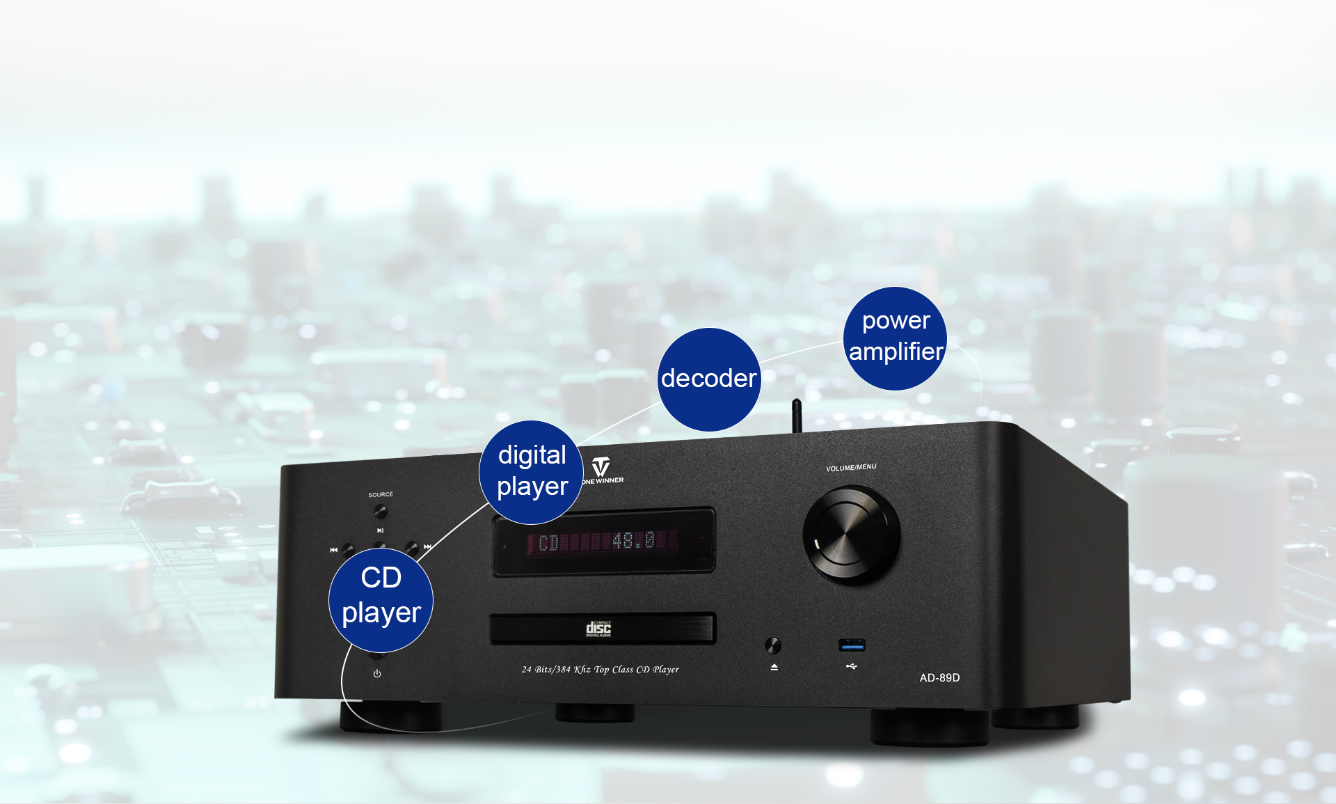 مشغل أقراص مدمجة، مشغل رقمي، جهاز فك تشفير، مضخم طاقة، أربعة في واحد! الوظيفة، الأداء، القوة، وجودة الصوت، كل ذلك في جهاز واحد! تشغيل بسيط ومريح، دون الحاجة إلى أي تعقيدات.