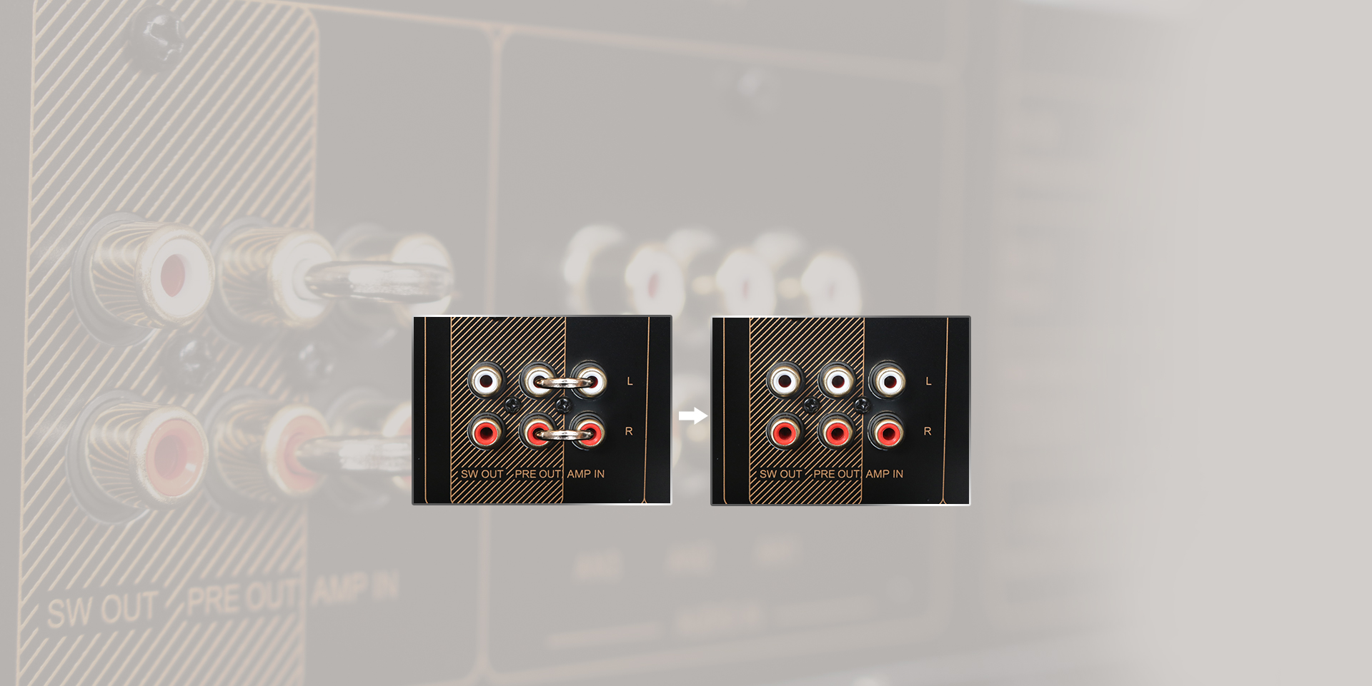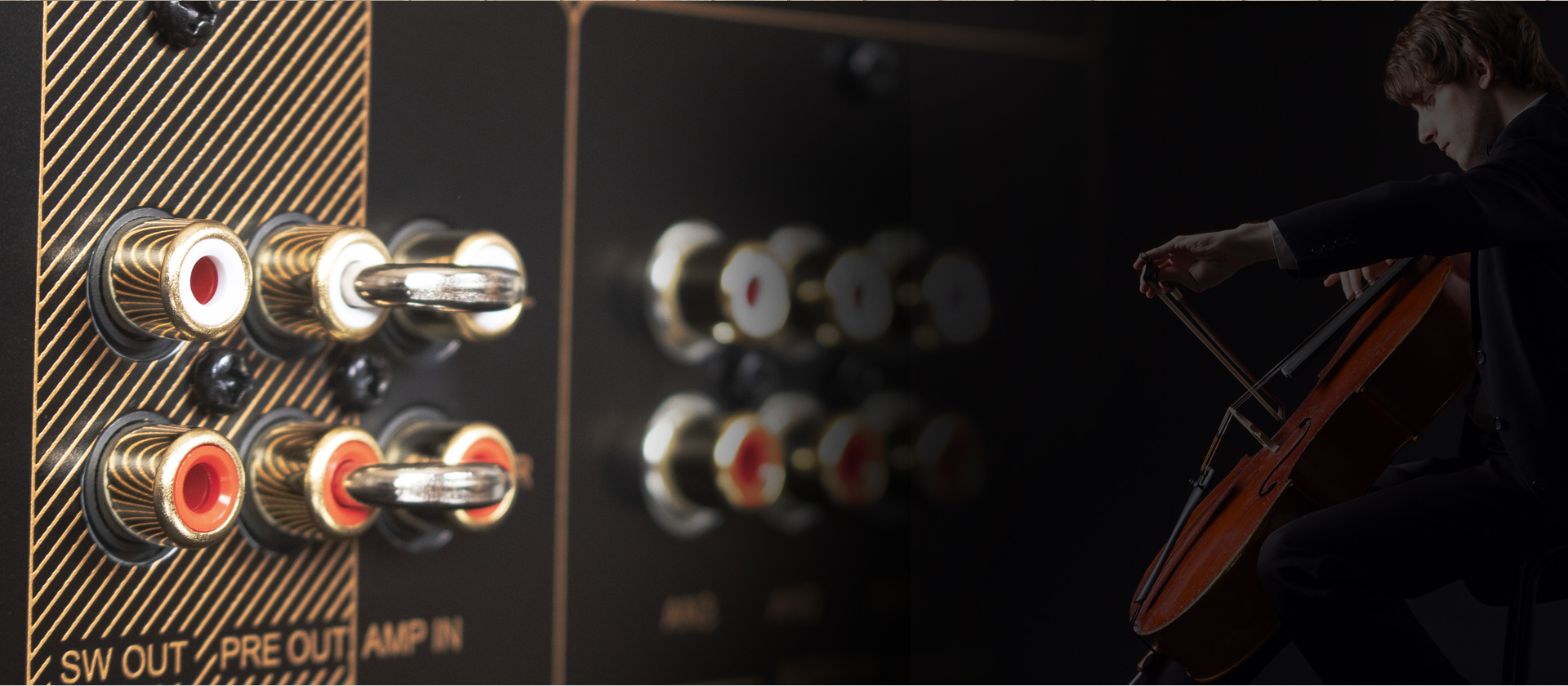 واجهة الإخراج: مجموعة واحدة من مخرج مكبر الصوت المسبق، مجموعة واحدة من مخرج الجهير، مجموعة واحدة من مخرج مكبر الصوت