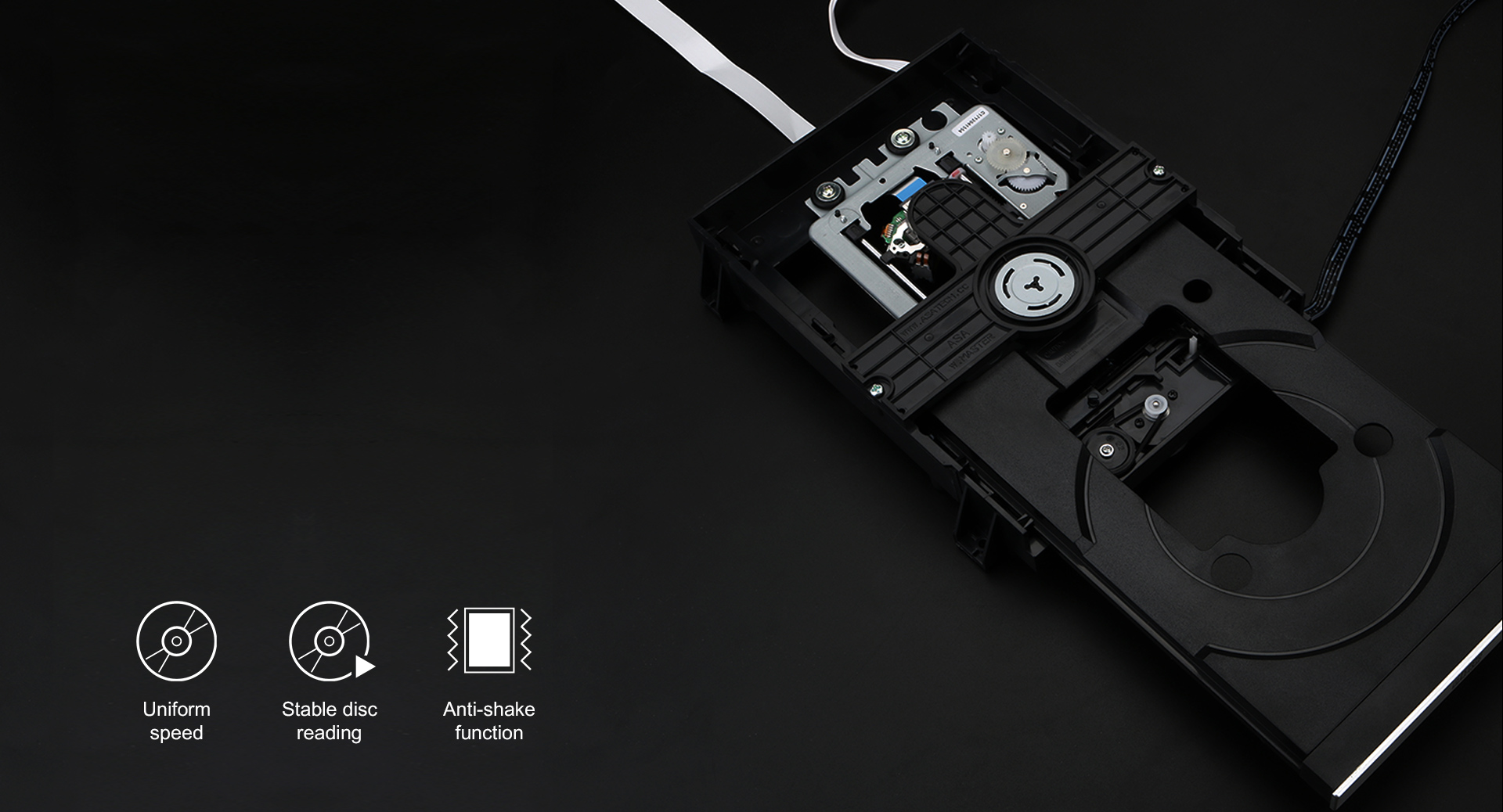 تتميز آلية الحركة عالية الجودة، المختارة بعناية، بسرعة دوران منتظمة وقدرة قراءة قوية للأقراص. أُضيفت قاعدة معدنية سميكة مقاومة للصدمات إلى أسفل الهيكل لتعزيز امتصاص الصدمات، مما يجعل نظام قراءة الأقراص البصري مستقرًا وموحدًا، مع توازن قوي.
