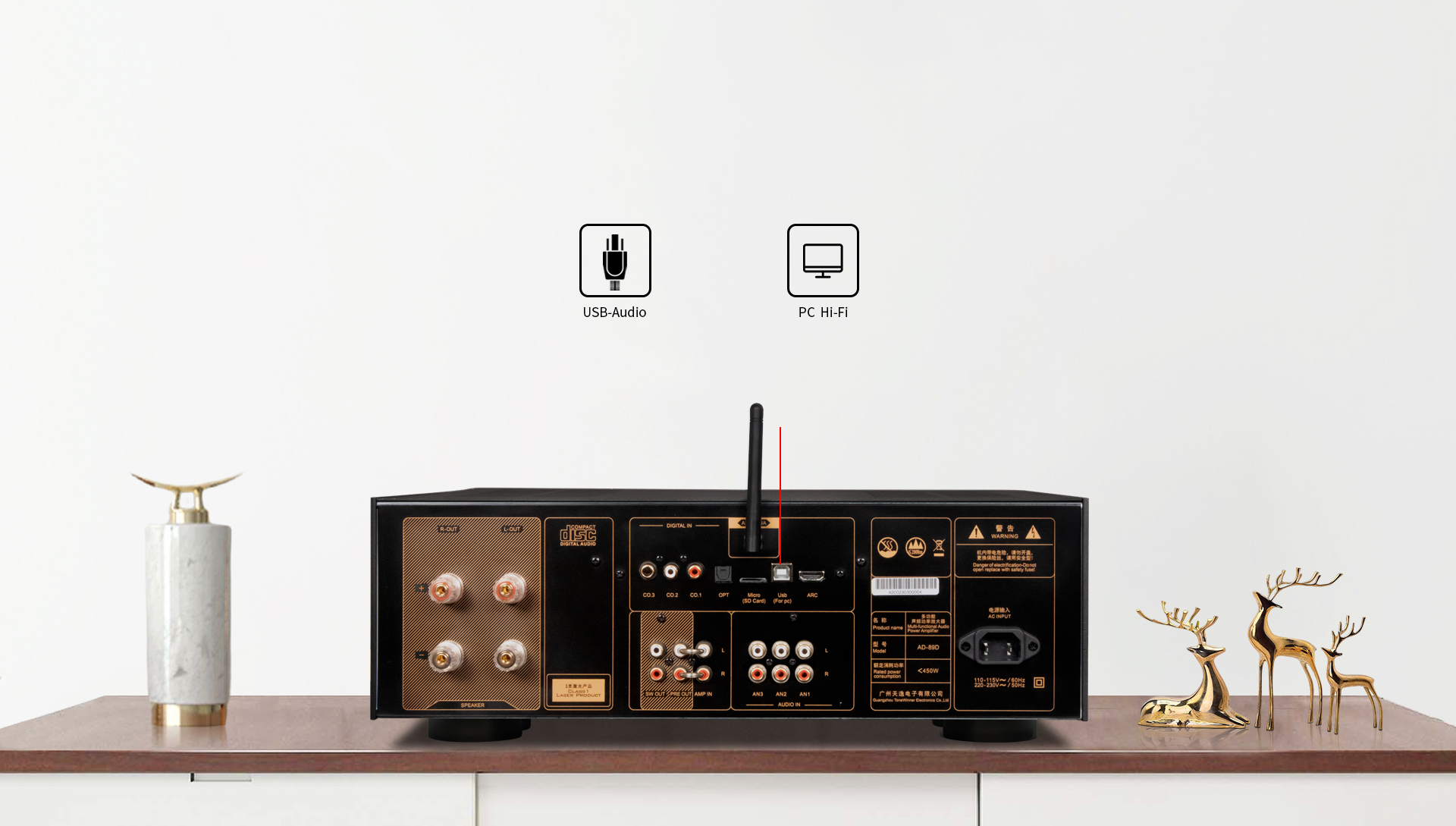 يدعم منفذ USB-Audio للكمبيوتر الشخصي بمعدل عينة PCM48kHz/24Bit لتحقيق تأثير صوت Hi-Fi حقيقي للكمبيوتر الشخصي وتلبية احتياجات محبي الصوت.