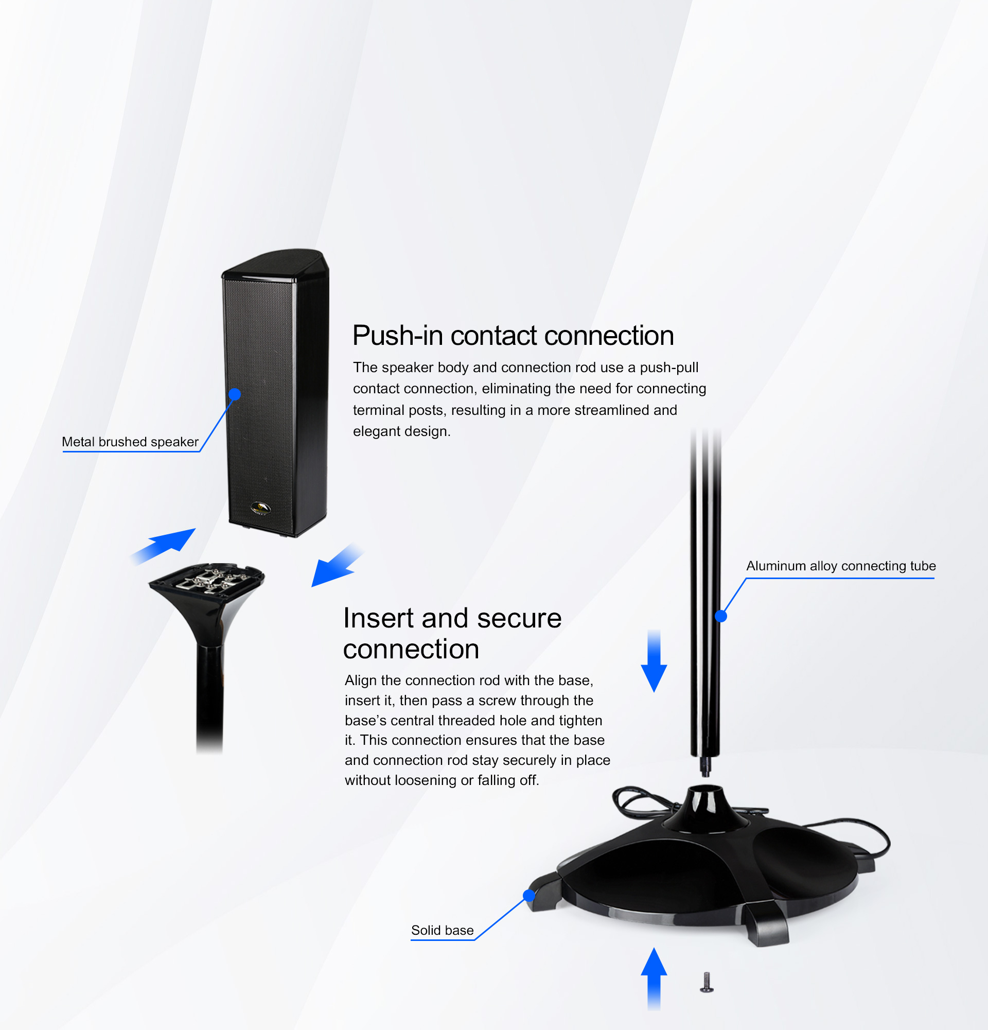 يتم ضبط كل مكبر صوت بزاوية دقيقة لتشغيل الوحدات، لإنشاء مجال صوتي بدون نقاط ميتة.