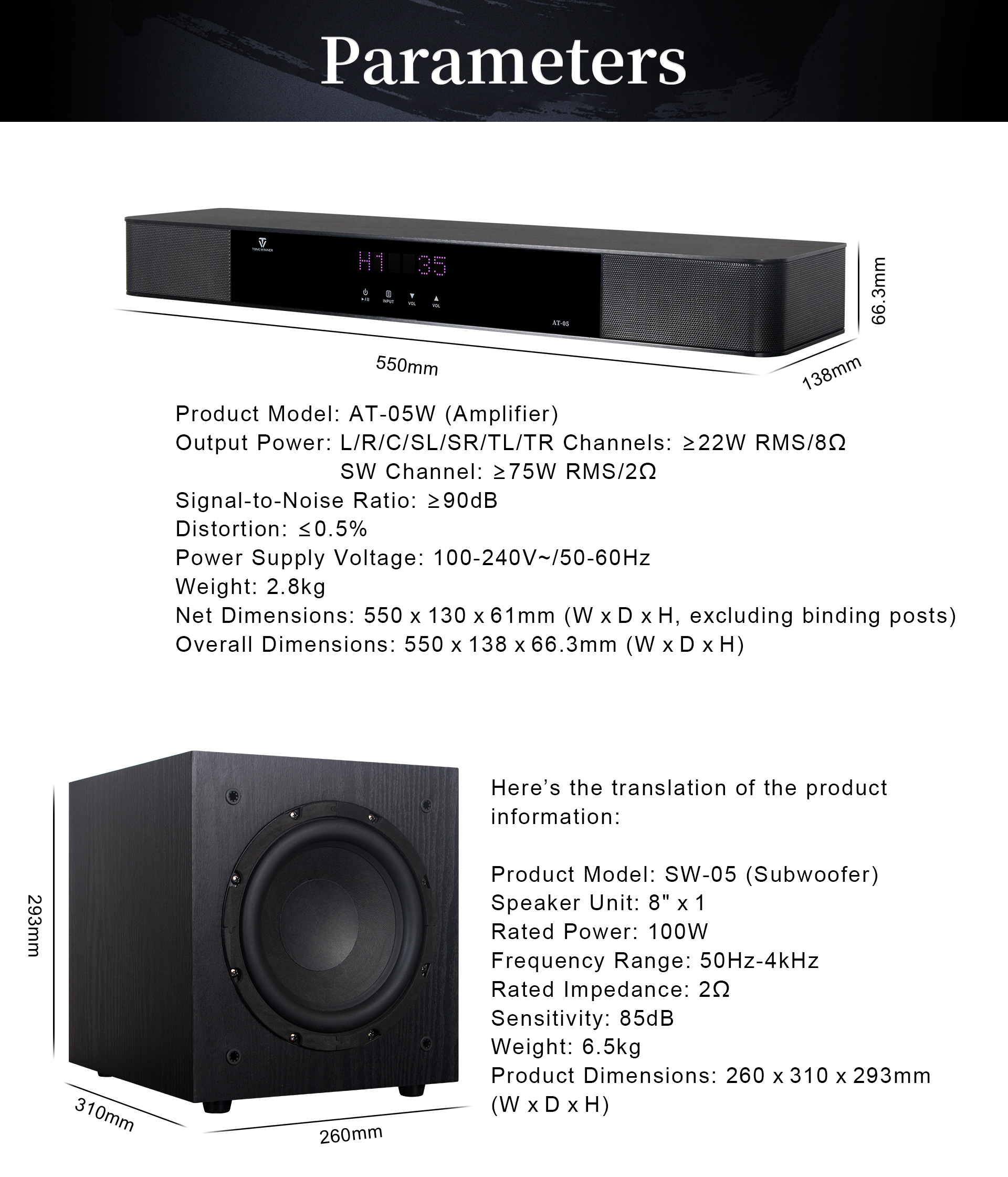 AT-05W (مكبر صوت مركزي مع مضخم صوت) |