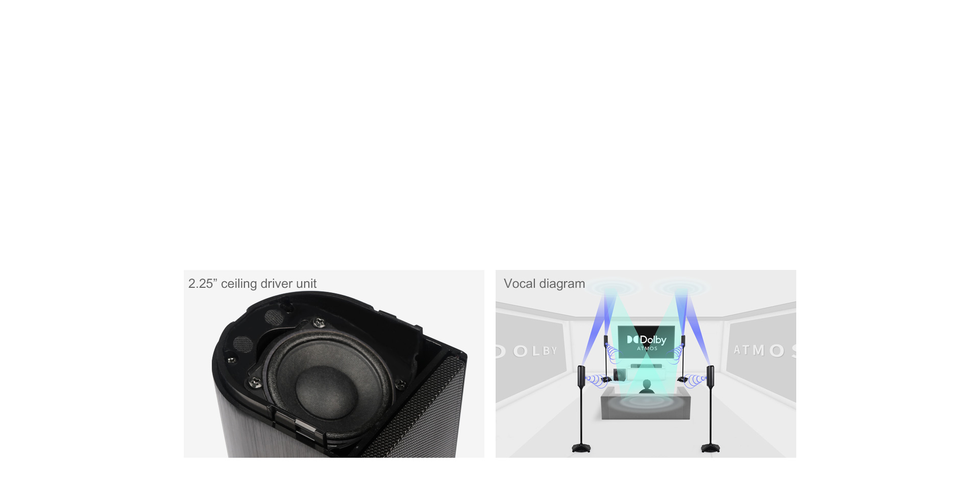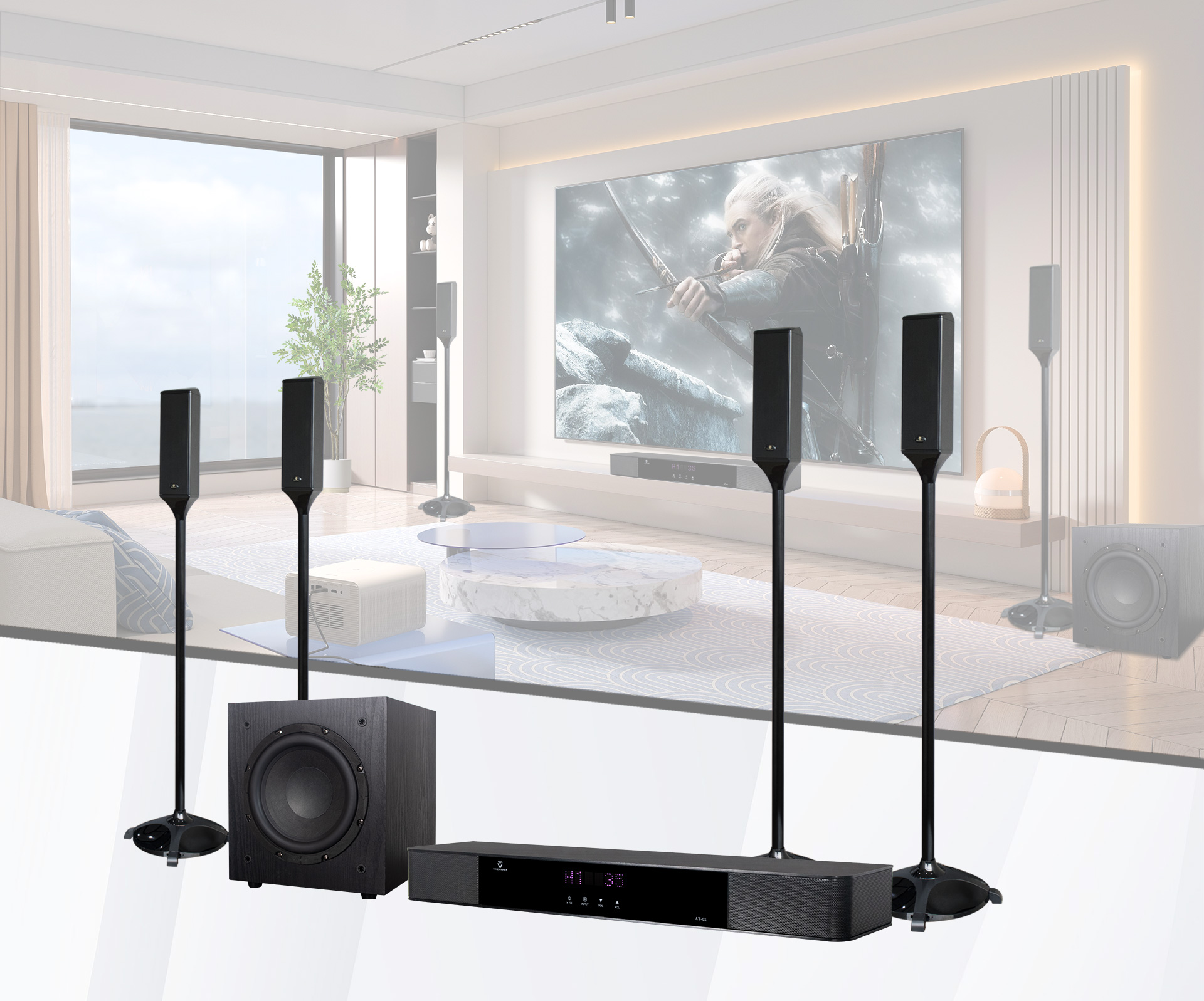 تم تجهيز السماعة الرئيسية ومكبرات الصوت المحيطة بأربعة مكبرات صوت كاملة النطاق