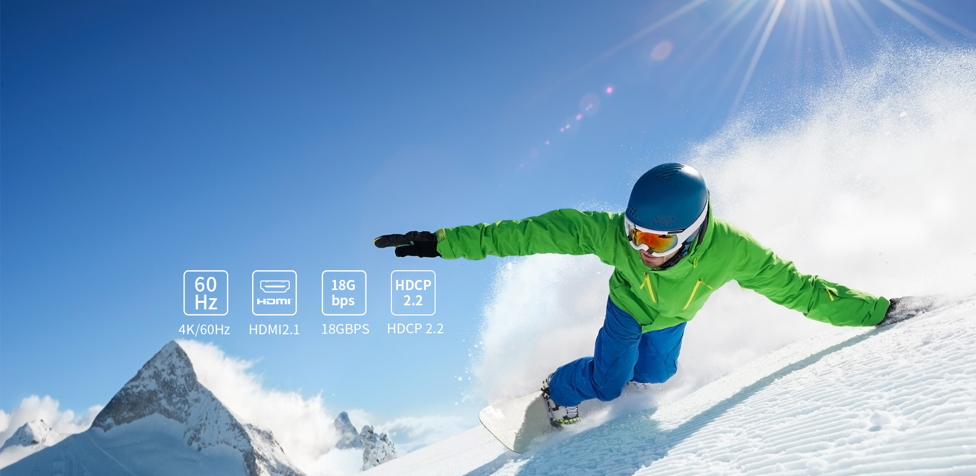 يصل عرض النطاق الترددي إلى 18 جيجابايت، وبكسلات الفيديو عالية الدقة 3840*2160 4K هي أربعة أضعاف دقة 1080P التقليدية عالية الدقة، من خلال تقنية RGB4:4:4، يتم تحسين تباين الصورة وسطوعها بشكل كبير، وإطلاق إمكانات جودة الصوت وجودة الصورة بشكل أفضل في الأفلام والألعاب.