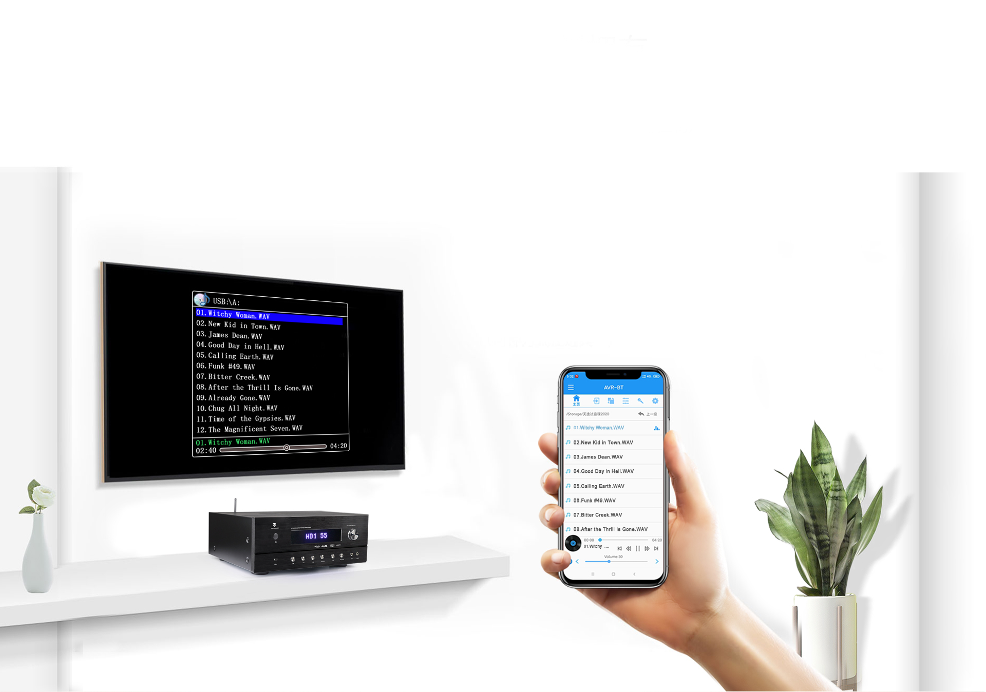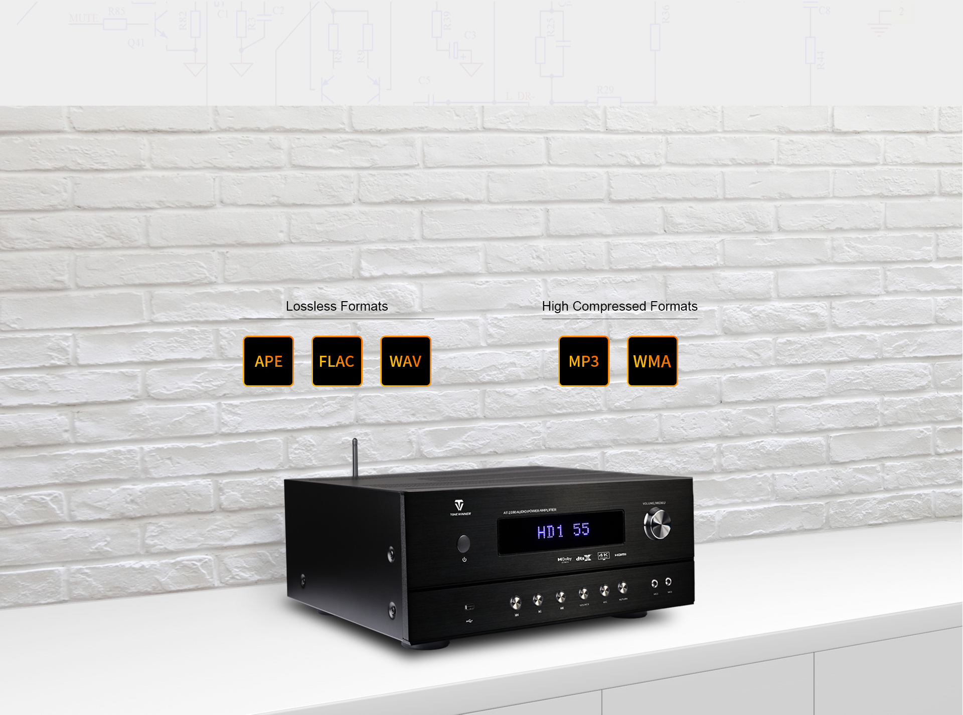 يدعم التشغيل المحلي من محركات أقراص USB بسعة 128 جيجابايت وبطاقات TF، ومتوافق مع تنسيقات الموسيقى السائدة بدون فقدان مثل APE وFLAC وWAV، بالإضافة إلى تنسيقات الموسيقى المضغوطة مثل MP3 وWMA، مما يعيد الجمال الحقيقي للموسيقى.