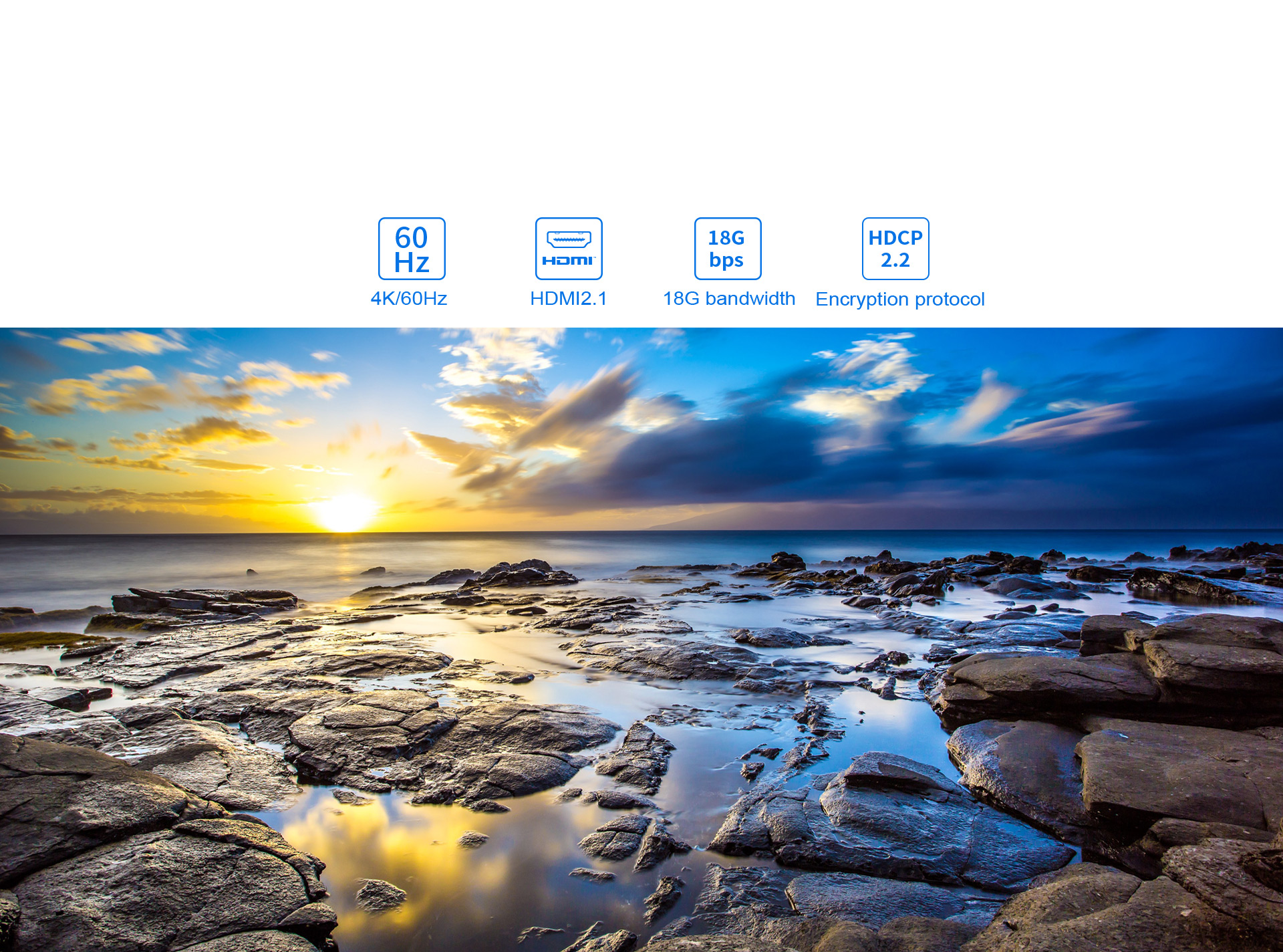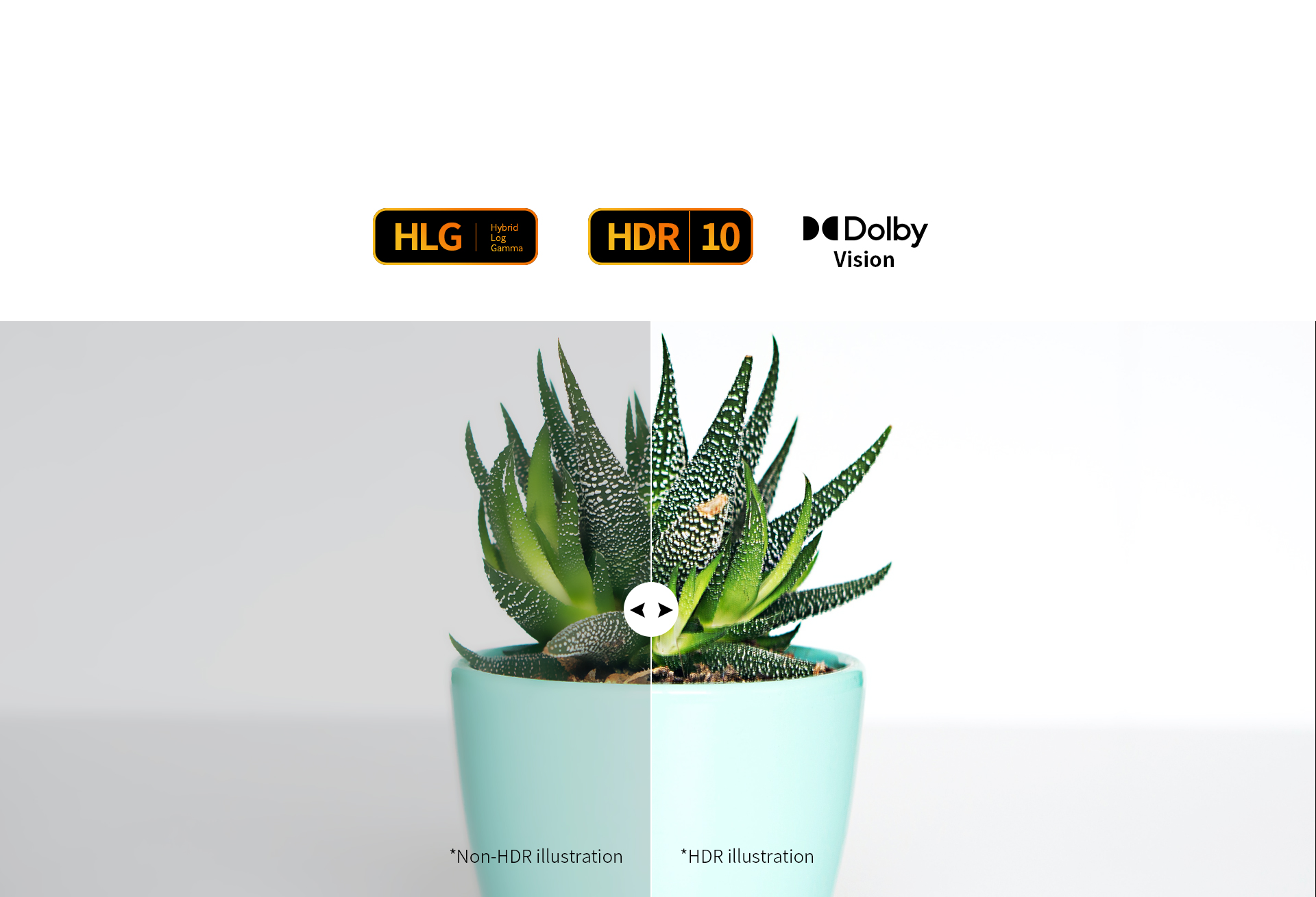 متوافق مع تقنيات HLG وHDR10 وDolby Vision، يعرض تفاصيل واضحة في كل من المناطق المضيئة والمظلمة، مما يحول تجربة المشاهدة الخاصة بك في دور السينما والتلفزيون مع سطوع وتباين ولون مذهل.