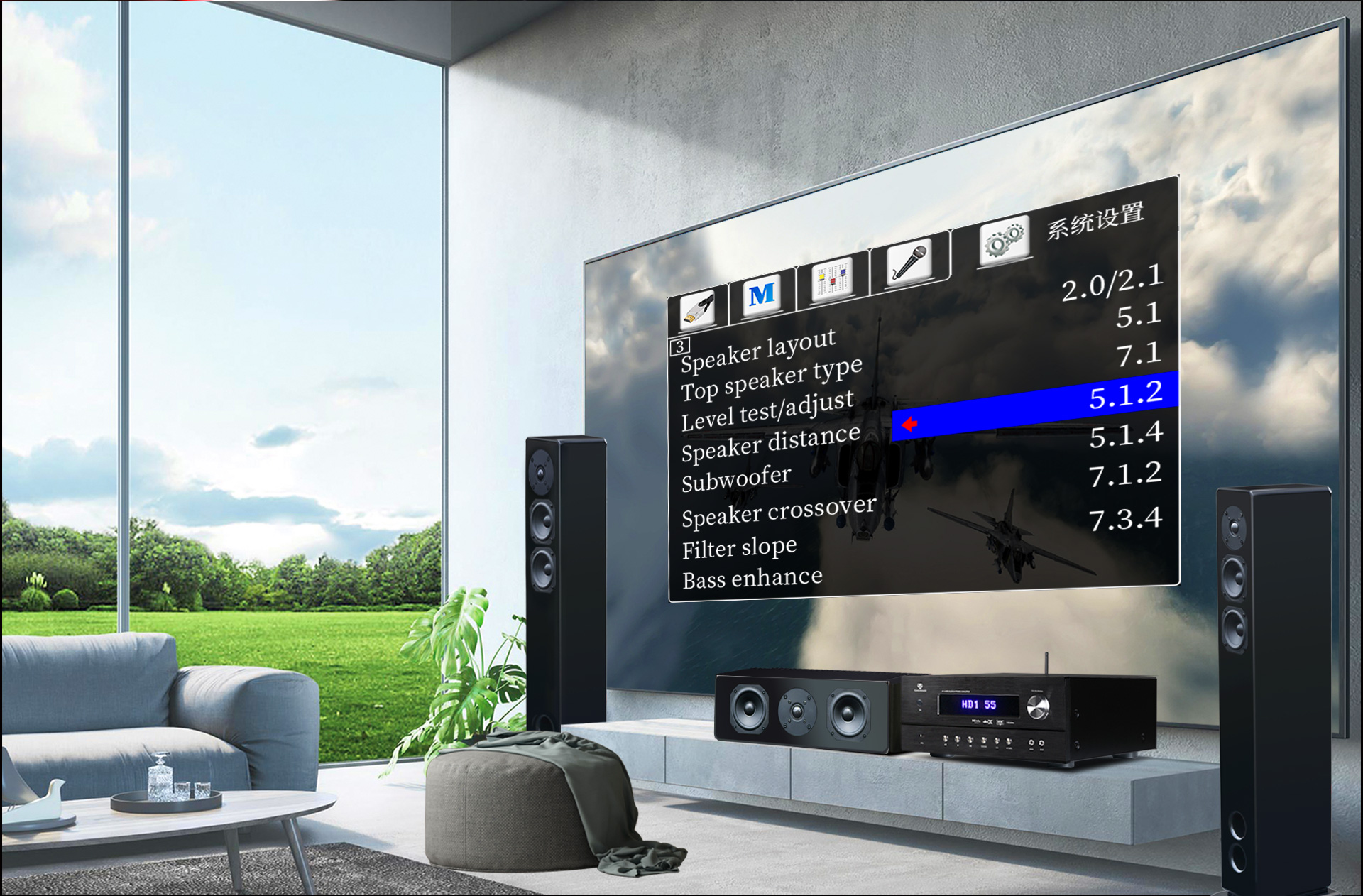 ويعملان معًا على إكمال ضبط تأثير الصوت، وضبط منحنى استجابة تردد مكبر الصوت، وتصحيح الجرس لضمان فصل مجال الصوت واستمرارية الصوت المحيطي. المتلقي