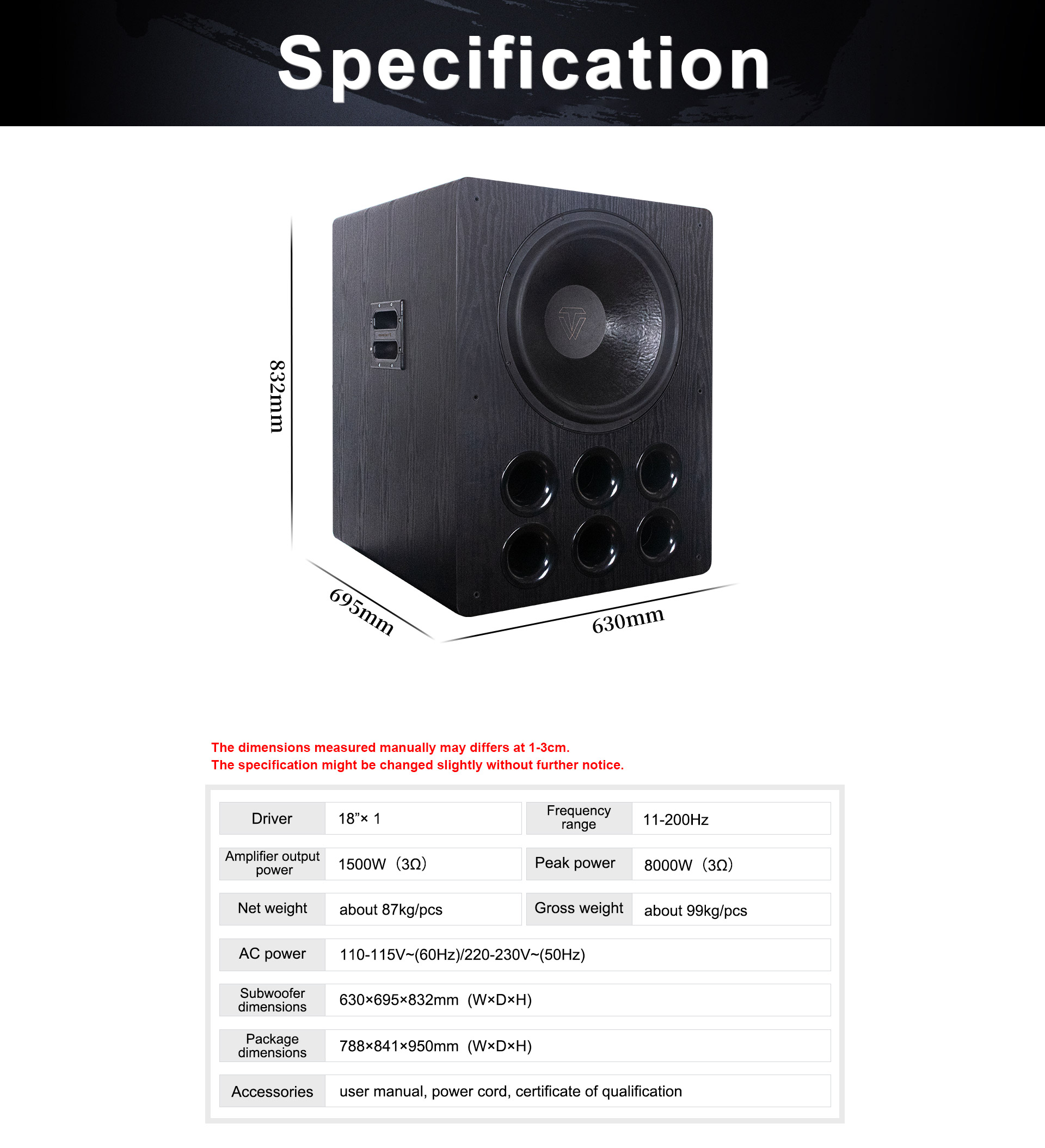| سائق | 18 بوصة | مزود الطاقة | 110-115 فولت/220-230 فولت، 50 هرتز/60 هرتز |