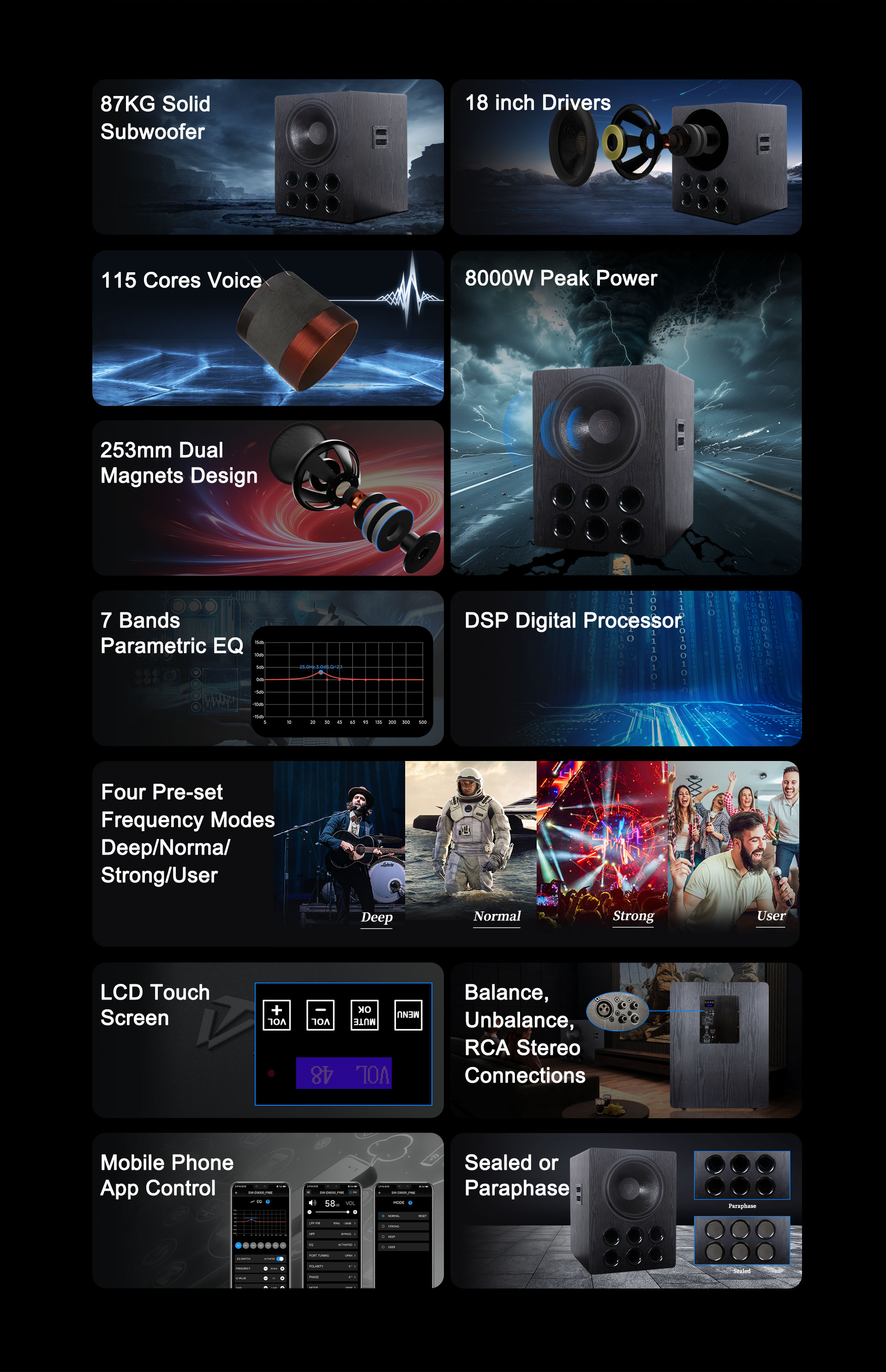 مكبرات صوت منخفضة التردد مقاس 18 بوصة، الوزن 22.2 كجم