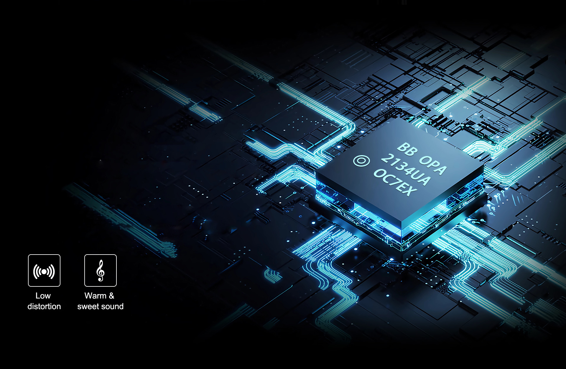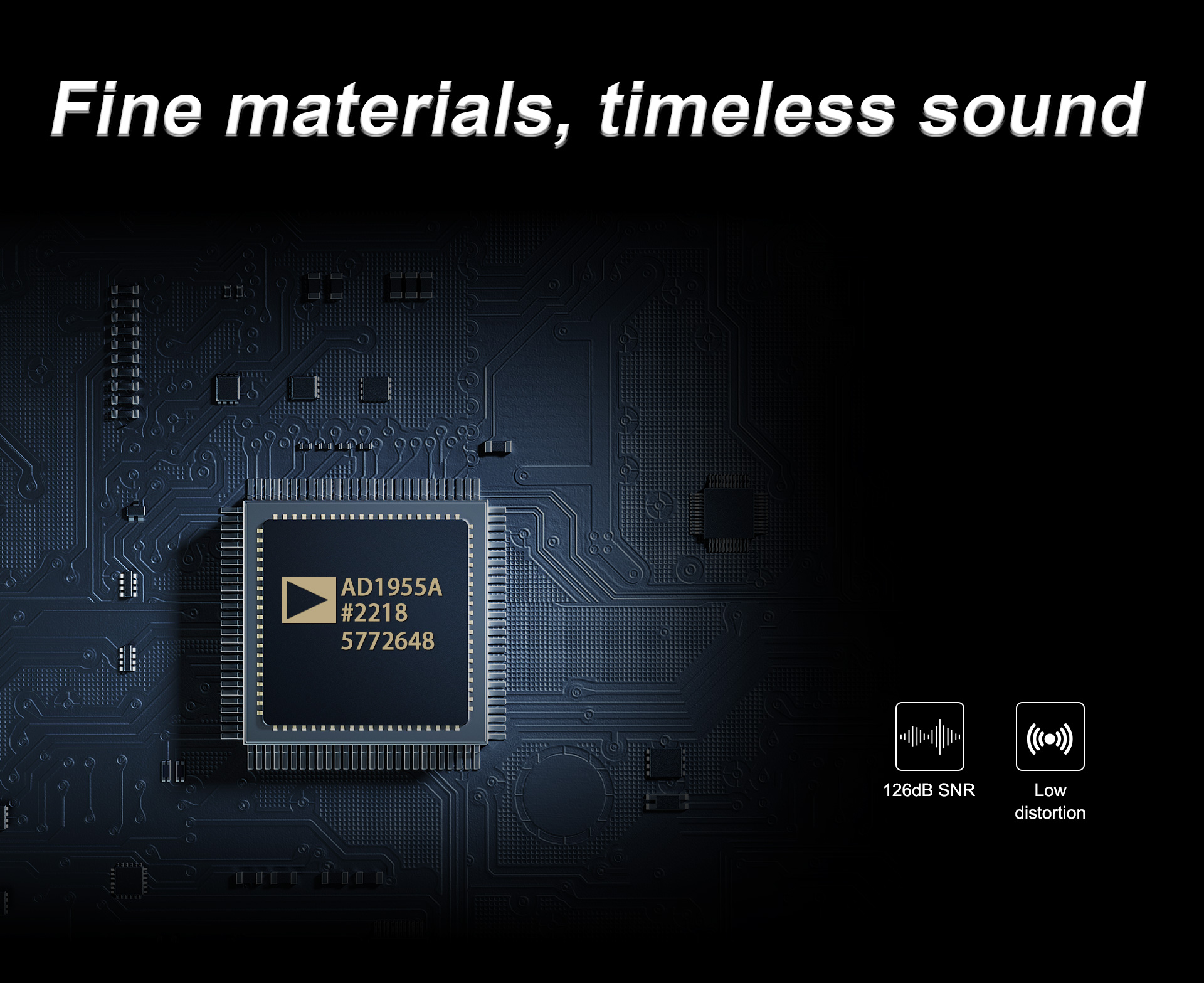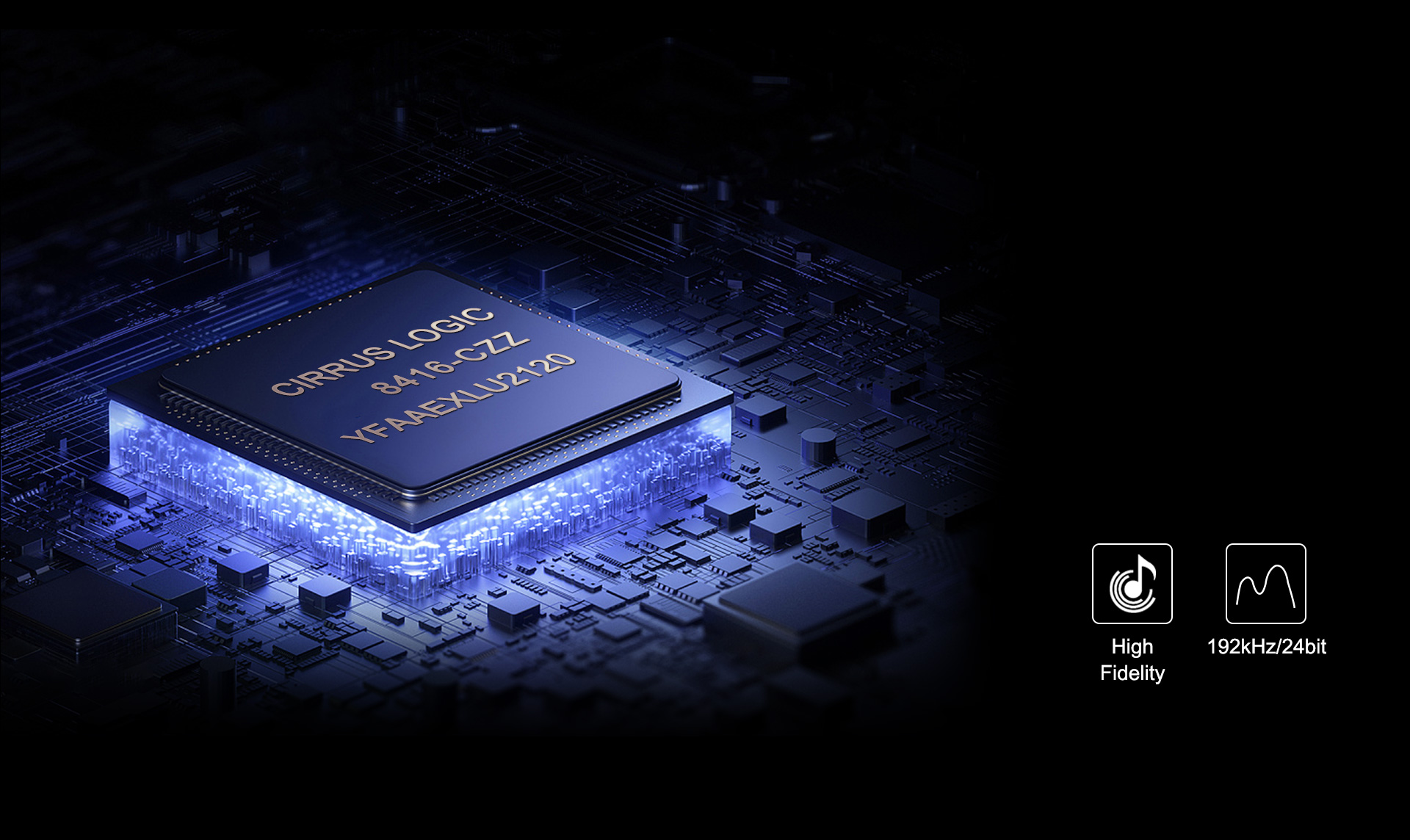 ت تستخدم شريحة استقبال الصوت الرقمي شريحة CS8416، التي تدعم إدخال تدفق الصوت الرقمي 192 كيلو هرتز/24 بت للاحتفاظ بتفاصيل موسيقية أكثر ثراءً وجمالاً وإعادة إنتاج المشهد الموسيقي .
