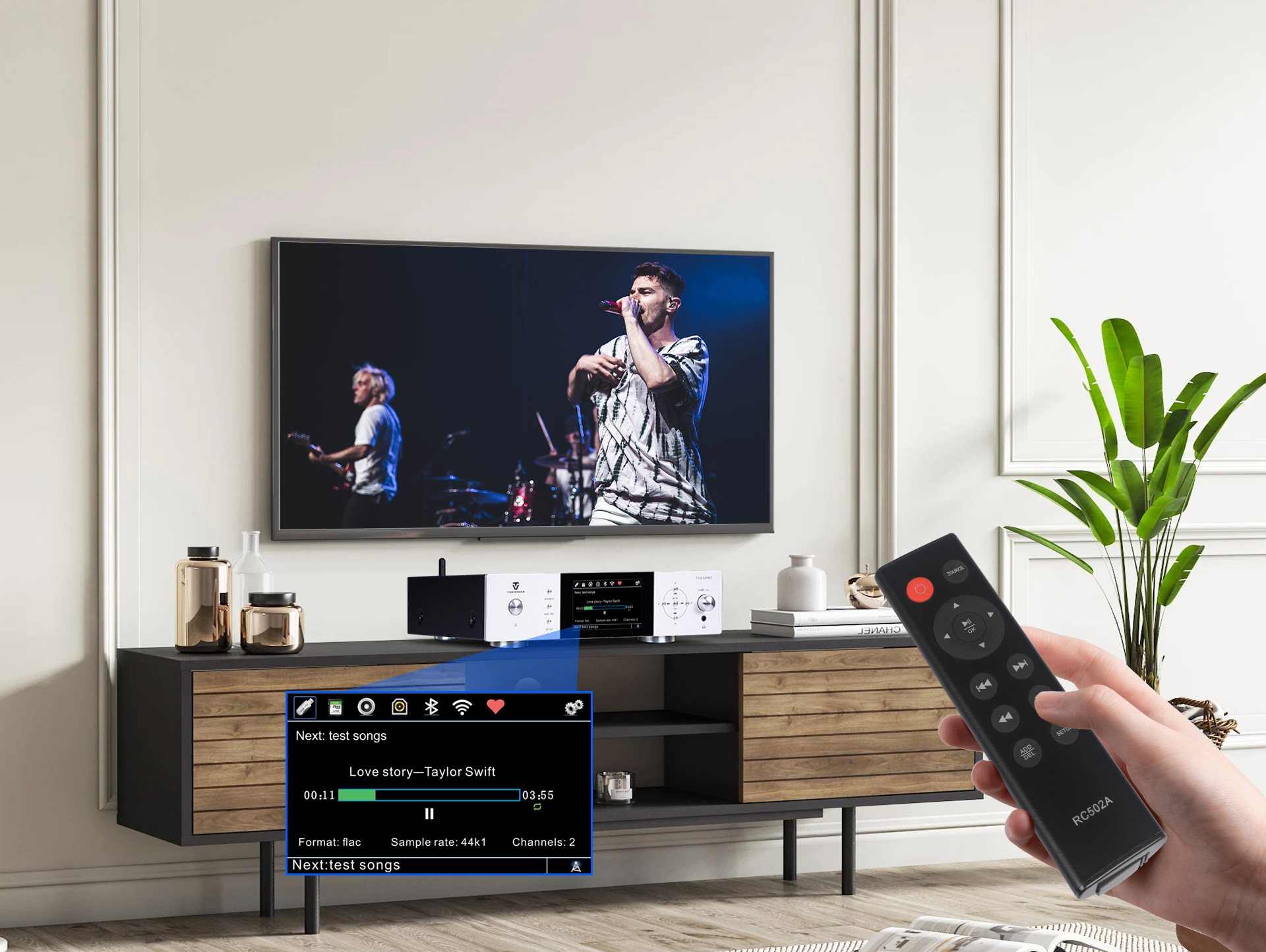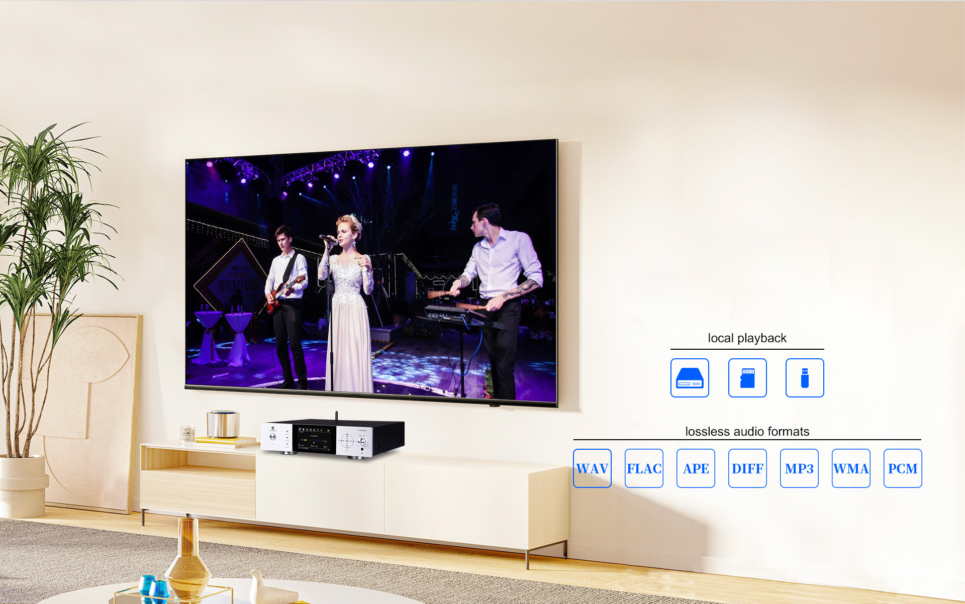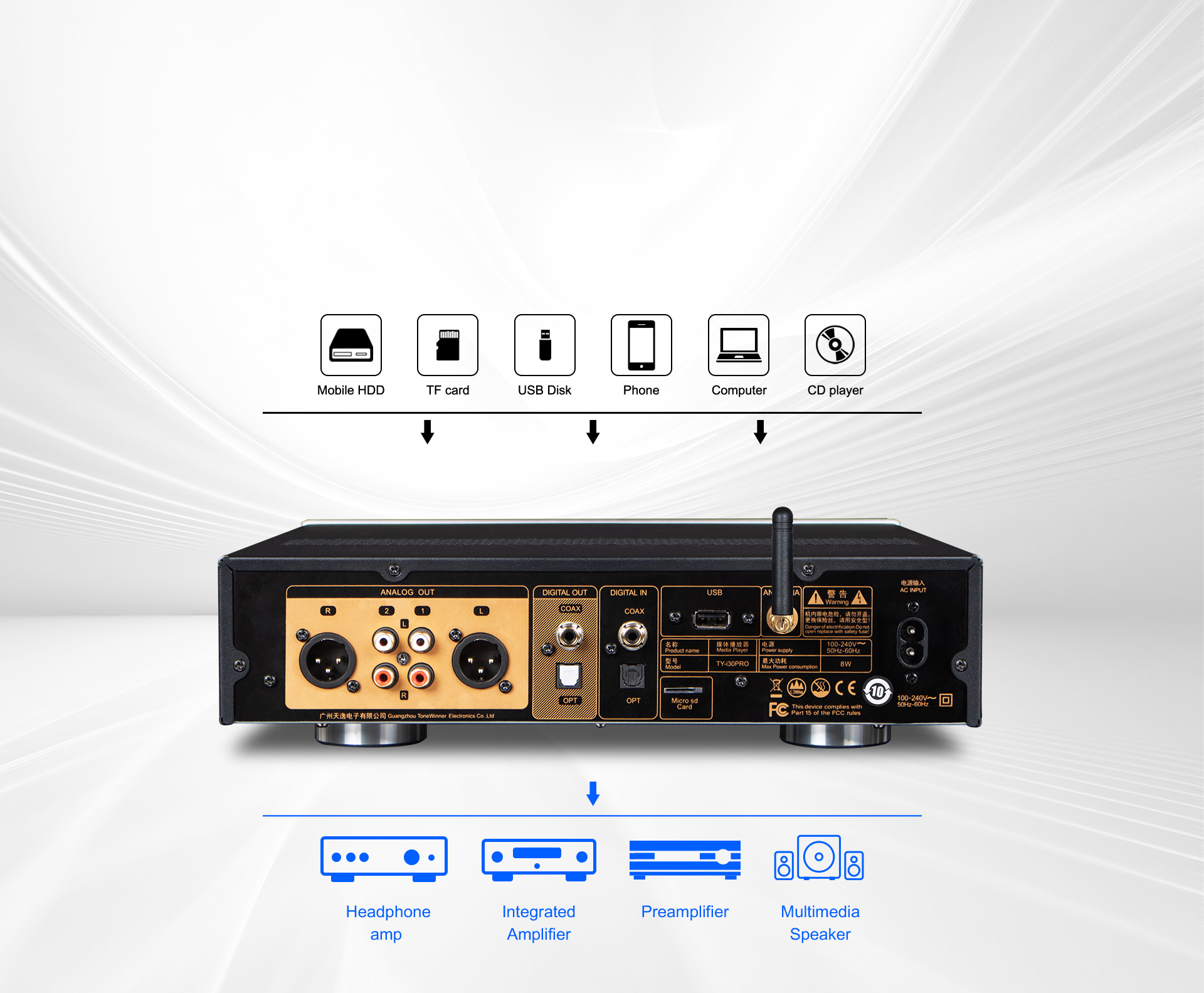 ت تستخدم شريحة استقبال الصوت الرقمي شريحة CS8416، التي تدعم إدخال تدفق الصوت الرقمي 192 كيلو هرتز/24 بت للاحتفاظ بتفاصيل موسيقية أكثر ثراءً وجمالاً وإعادة إنتاج المشهد الموسيقي .