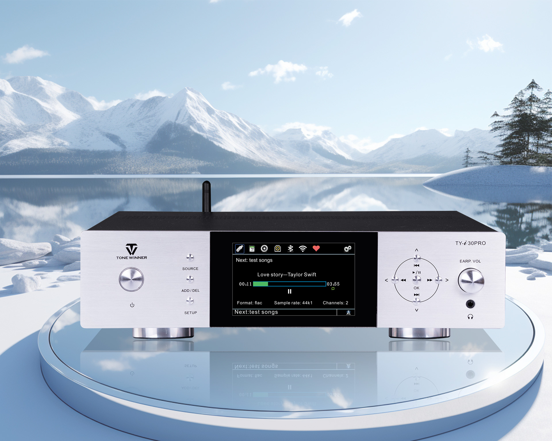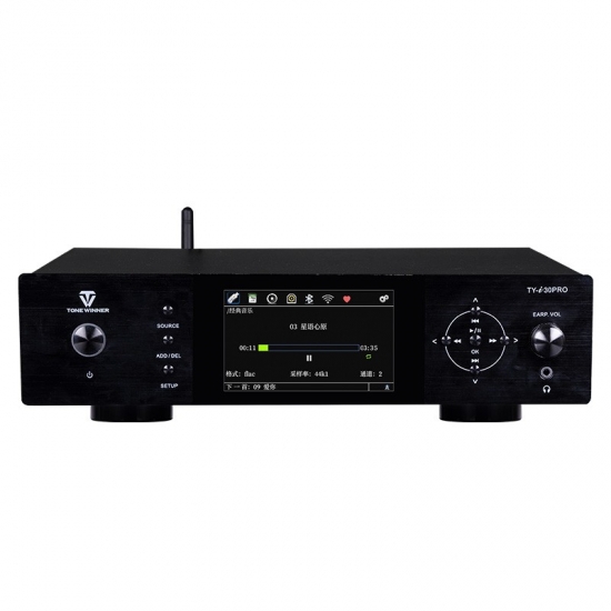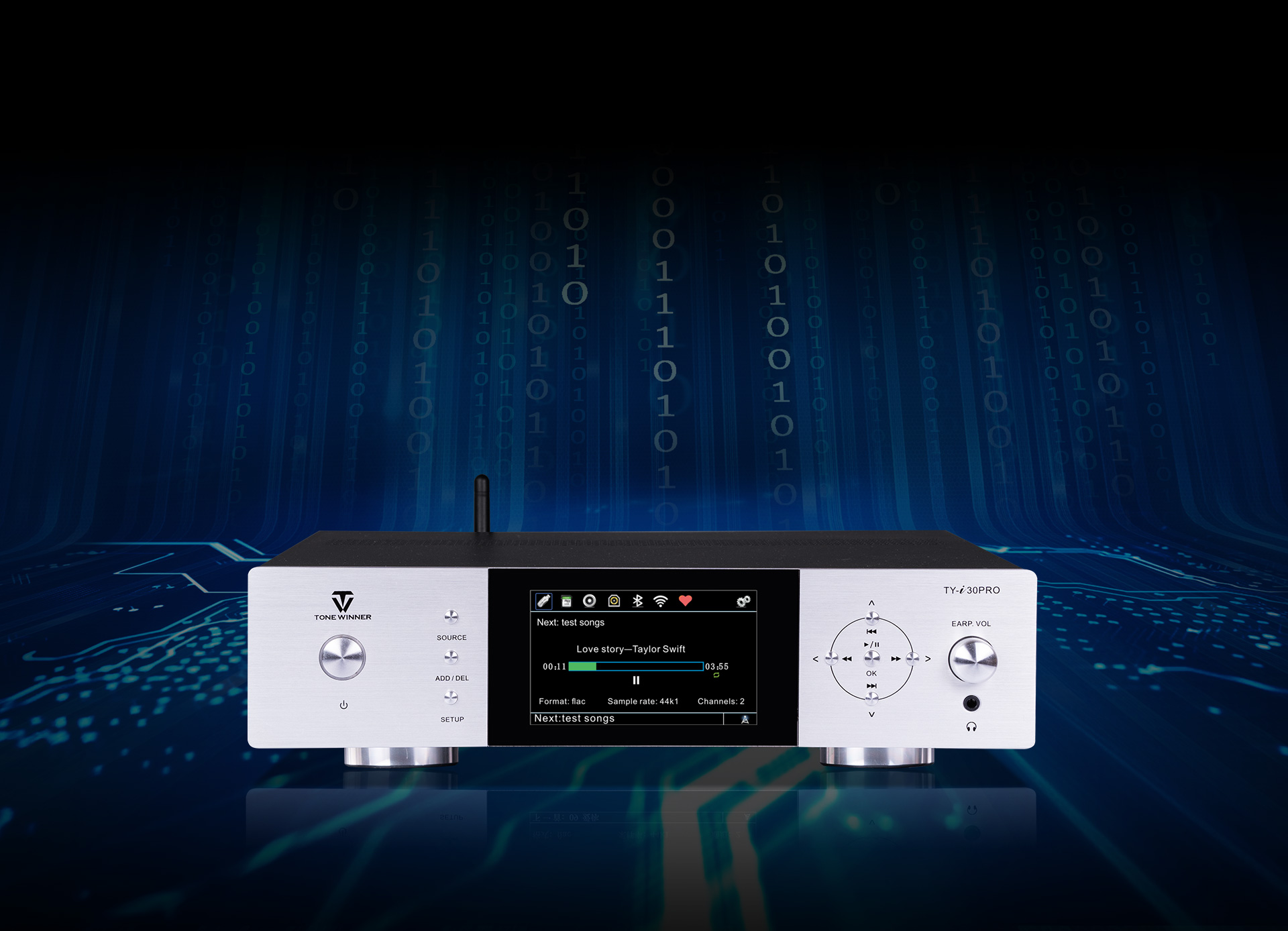 TY-i30PRO هو مشغل وسائط جديد متعدد الوظائف أطلقته ToneWinner. يستقبل هذا المشغل الأغاني من الهواتف المحمولة وأجهزة iPad وأجهزة الكمبيوتر المحمولة وغيرها من الأجهزة عبر تقنيات DLNA وAIRPLAY وBluetooth. يدعم TY-i30PRO التشغيل المحلي للأقراص الصلبة المحمولة بسعة 2 تيرابايت وبطاقات TF ومحركات أقراص USB المحمولة، ويدعم صيغ الموسيقى بدون فقدان للبيانات مثل WAV/FLAC وAPE، ويحتوي على مقبس سماعة رأس أمامي مقاس 3.5 مم، ويدعم إدخال وإخراج تنسيق البث الرقمي PCM البصري والمحوري 192 كيلو هرتز/24 بت.