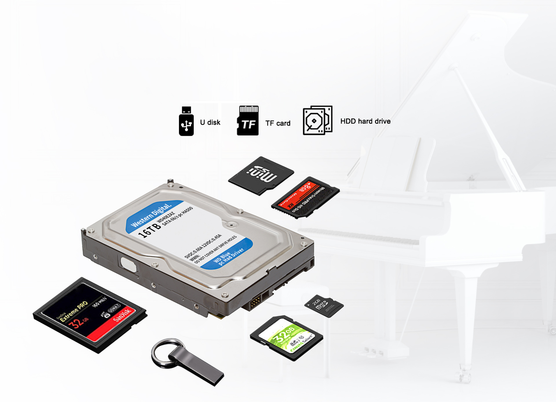 من خلال محرك بصري محمول USB خارجي، فهو لا يدعم تشغيل أقراص CD فحسب، بل يمكنه أيضًا إجراء تمزيق بدون فقدان لمحتويات الأقراص المضغوطة، وتعديل أسماء المسارات، وما إلى ذلك، وإنشاء معلومات الألبوم والفنان تلقائيًا، ودعم الحفظ على أجهزة التخزين المحمولة المحلية.