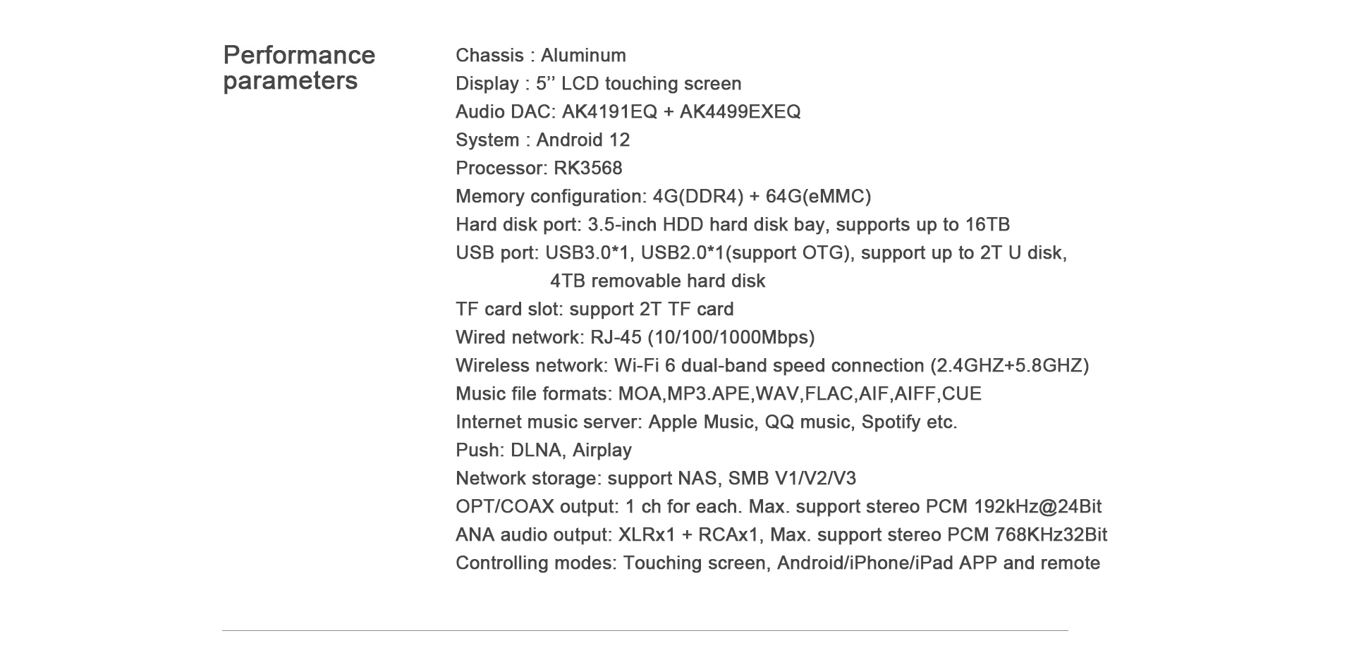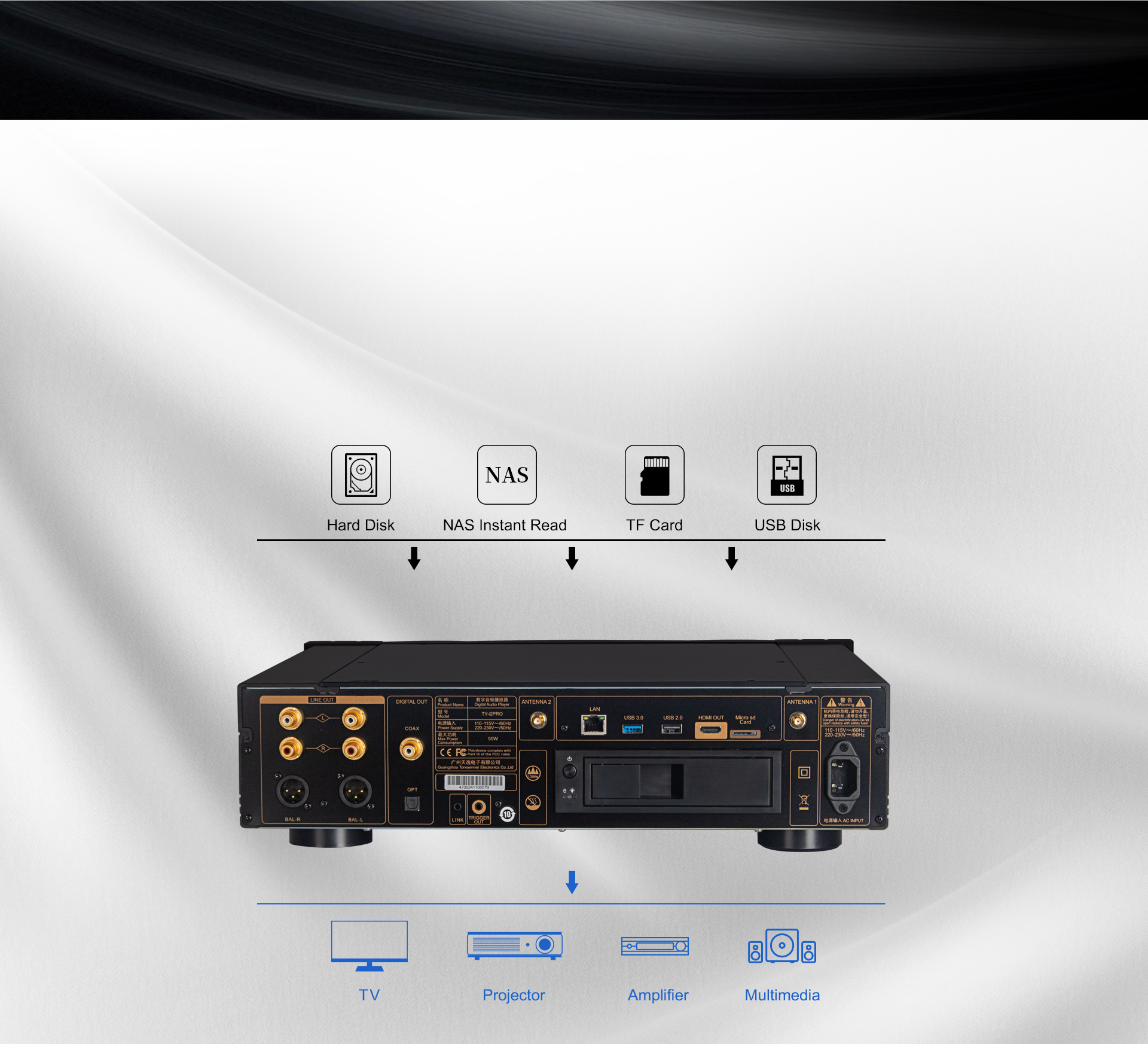 مزود بساعتين عاليتي الدقة بالفيمتوثانية، فهو يعمل على قمع الاهتزاز بشكل فعال، ويوفر ديناميكيات ودقة عالية للغاية، ويعيد إنتاج مجال الصوت الحقيقي وتفاصيل الصوت لمشهد تسجيل الموسيقى.