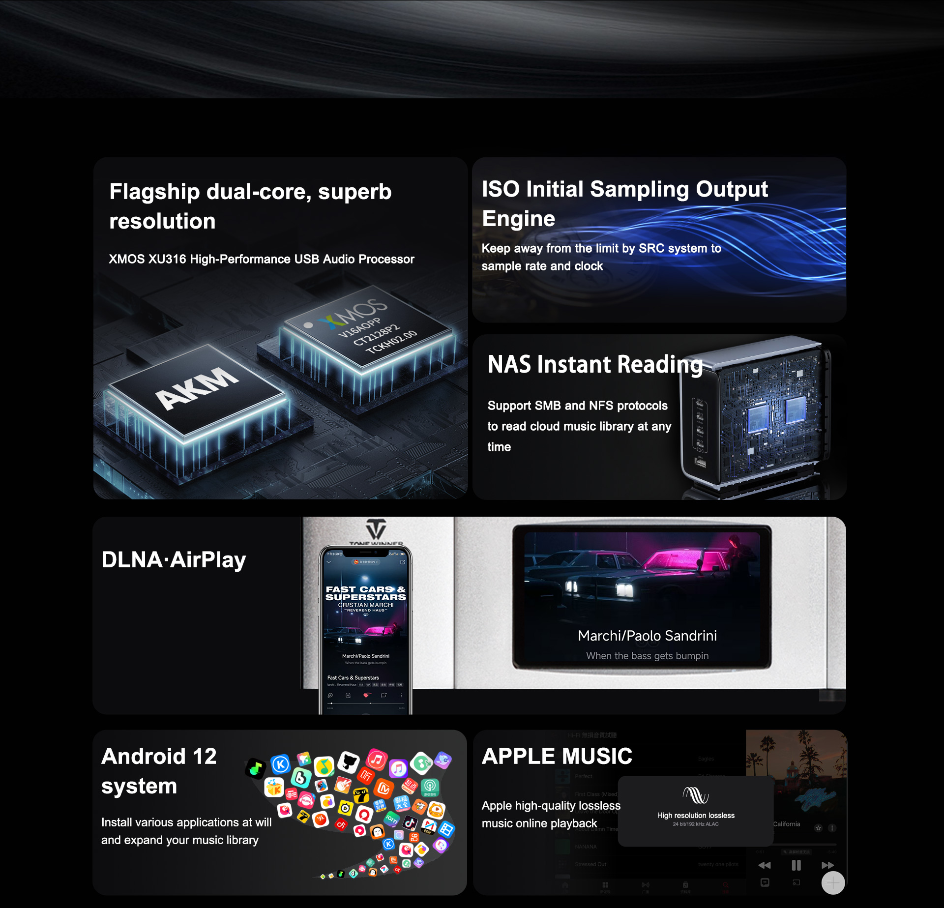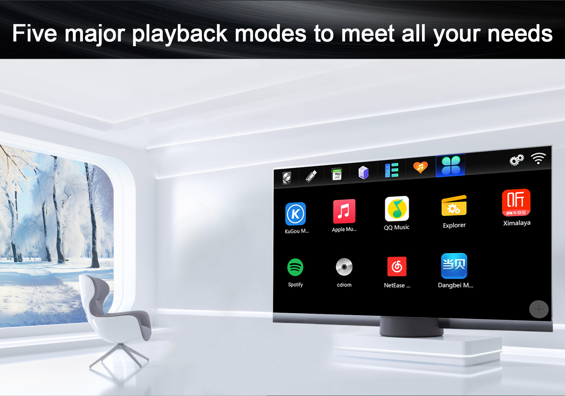 يحتوي هذا الجهاز على تطبيقات تشغيل موسيقى رئيسية مدمجة من الداخل والخارج، كما أن العديد من التطبيقات الأصلية مجانية للتوسع، مما يزيد من إثراء وظائف واستخدامات هذا الجهاز.