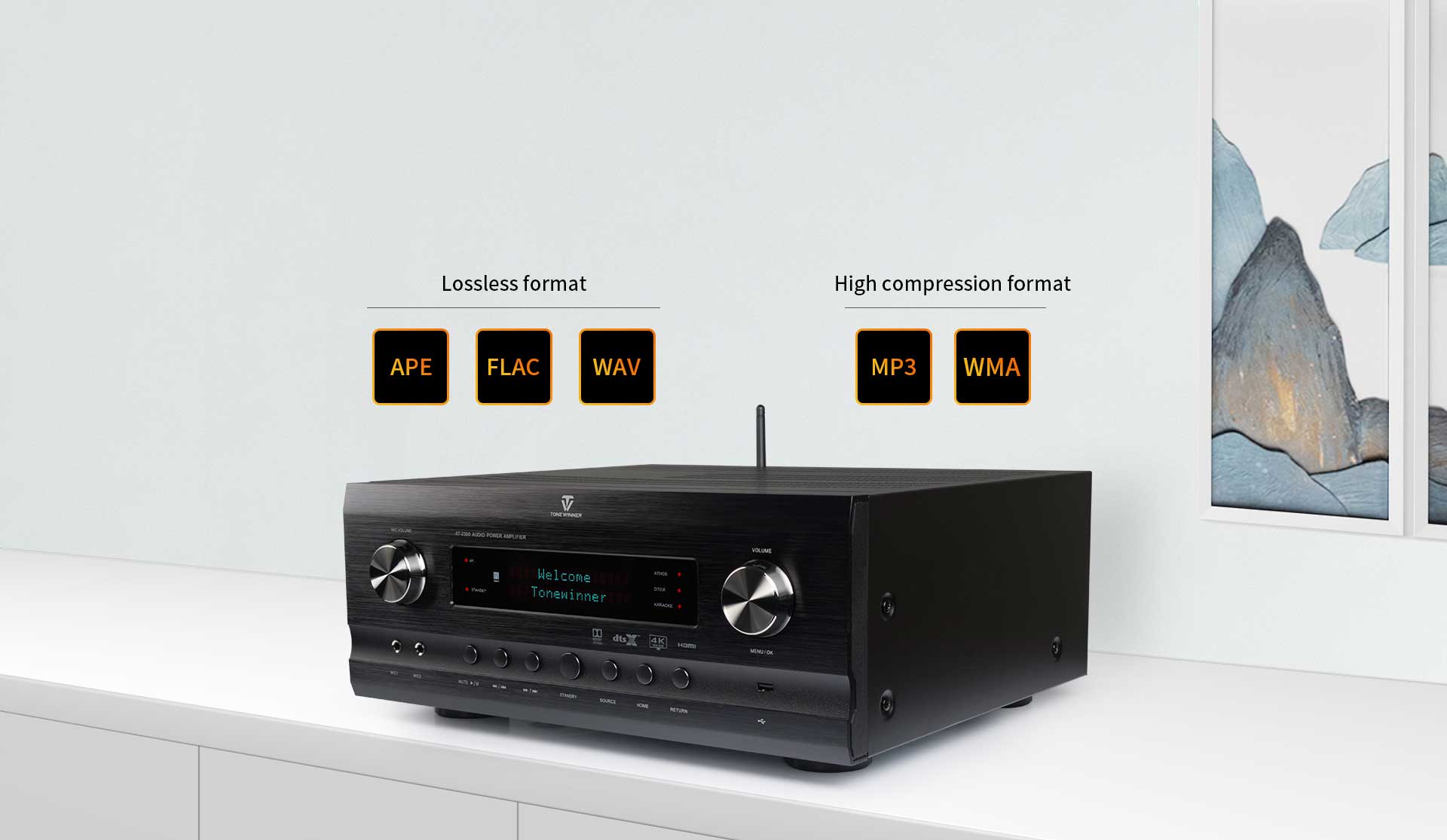 جهاز AT-2300 هو جهاز استقبال صوتي/مرئي متكامل مزود بمضخم صوت وفك تشفير لـ 12 قناة. يدعم تقنيات Dolby Atmos وDolby Vision وDTS:X و3D و4K وHDR وجميع الصيغ السابقة. كما يدعم HDMI ARC وBluetooth والتحكم عبر التطبيقات وبطاقات TF وأقراص USB وصيغ APE وFLAC وWAV وMP3 وWMA. سيمنحك نظام مكبرات الصوت 5.1.2 تجربة كاريوكي رقمية استثنائية. تُعد Tonewinner من أفضل 10 علامات تجارية صوتية في الصين، ولديها خبرة تزيد عن 30 عامًا في تصميم وتصنيع المنتجات الصوتية. بصفتها المورد الأصلي، ترحب Tonewinner دائمًا بالموزعين والشركاء والعملاء من جميع أنحاء العالم.